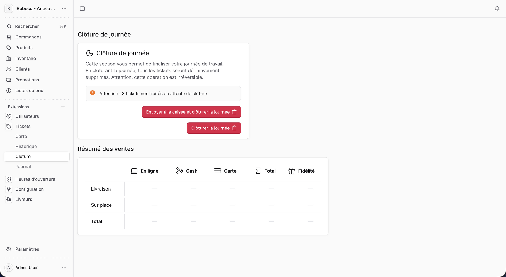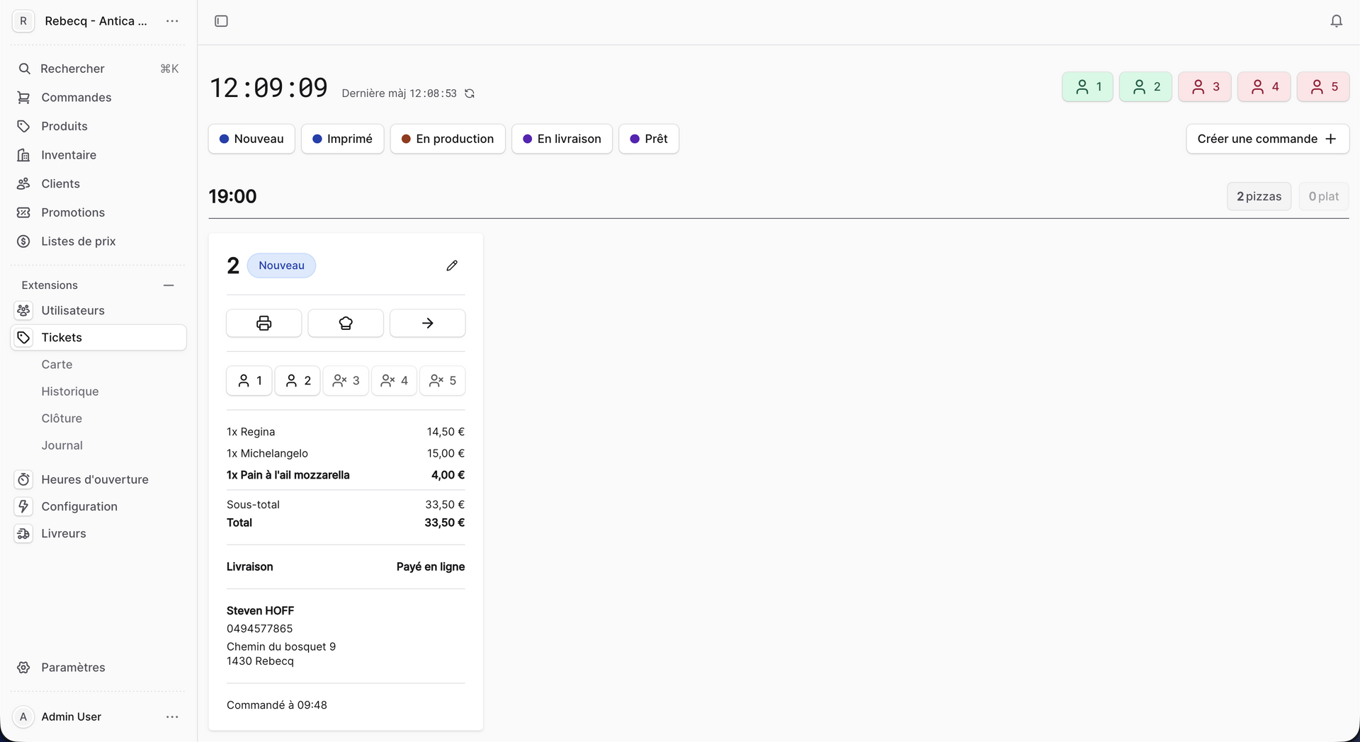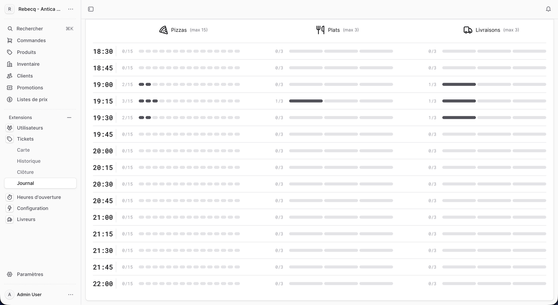 Conception d’un outil digital complet permettant de gérer l’ensemble de l’activité d’une pizzeria depuis une seule plateforme. La solution couvre la création et la gestion des menus, la prise de commandes, l’organisation de la préparation en cuisine et le suivi des livraisons. L’interface a été pensée pour s’intégrer directement dans la réalité opérationnelle du client, avec un flux de travail simple et efficace pour les équipes en salle, en cuisine et pour les livreurs.