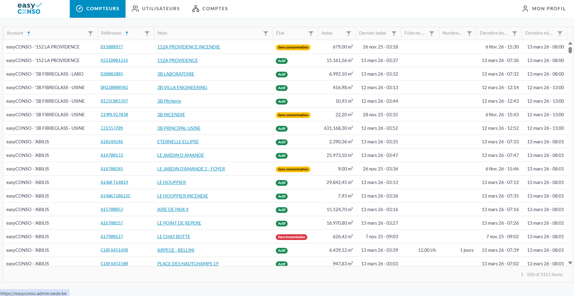 Interface de pilotage des compteurs d'eau pour la SWDE