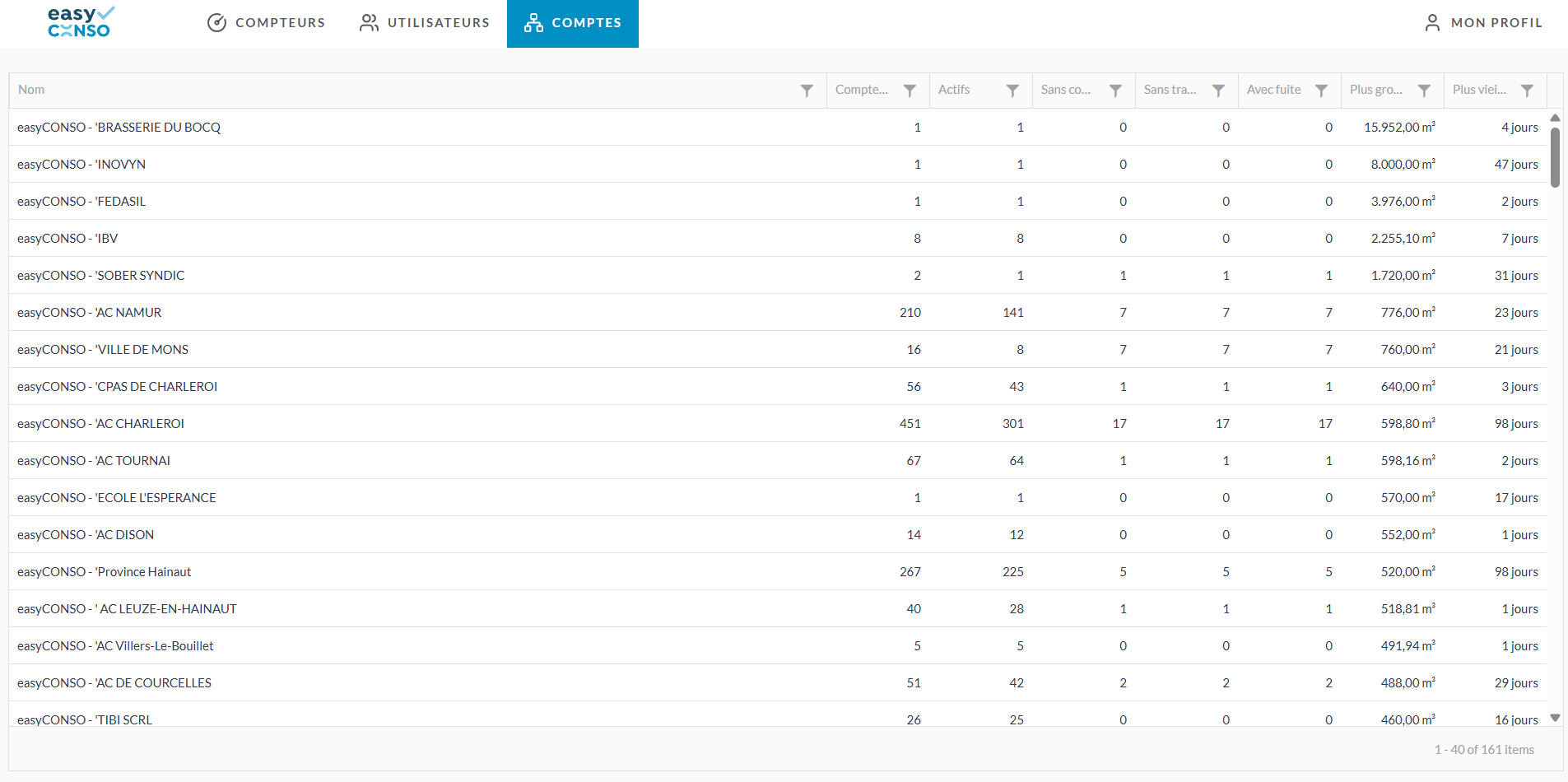 Visualisation centralisée des compteurs sur un territoire spécifique